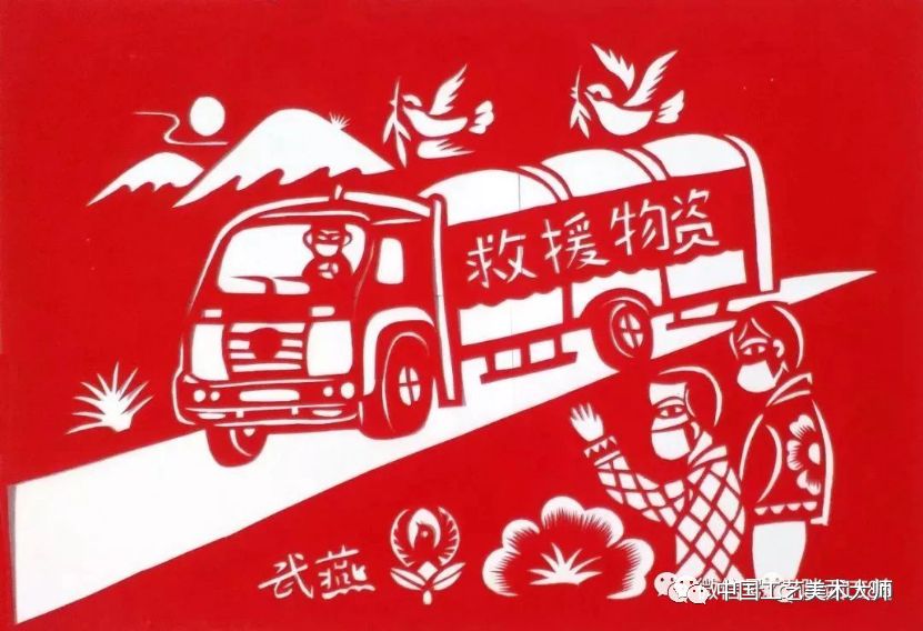 剪纸《救援物资》