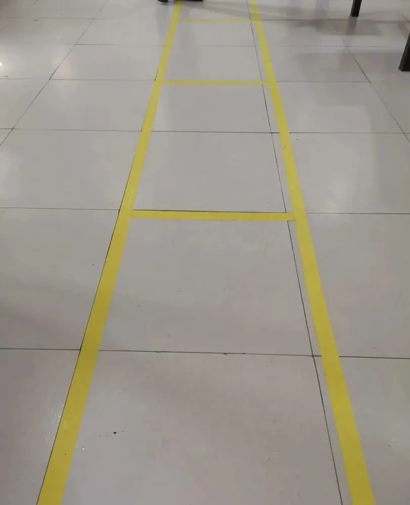 在职工食堂,地面设置的间隔1.5米的标示线十分醒目,每个餐桌粘贴了“每桌仅限1人”标识,时刻提醒着用餐人员避免密集接触,操作间显著位置张贴了《食堂消毒防疫措施》,清洗池旁摆放的清洁用品一应俱全。