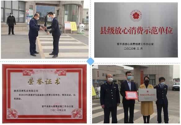 2020年3月12日,第38个国际315消费者权益日来临之际,富平县市场监督管理局莅临陕西圣唐乳业有限公司,授予圣唐乳业“县级放心消费示范单位”,并颁发荣誉证书,举行授牌仪式。