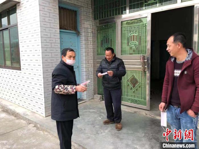 曾术兵为村民送上口罩 桃宣 摄