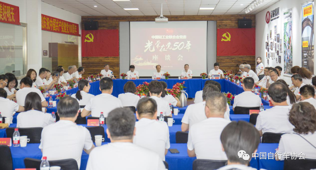 由中国自行车协会承办的 党委“光荣在党50年”座谈会在金轮集团召开。会议由中国轻工联党委常委、中国自行车协会党支部书记、理事长刘素文主持,他代表全体与会人员,向作出了不可磨灭贡献的老党员致以崇高敬意,对共同承办此次活动的金轮集团致以诚挚谢意。