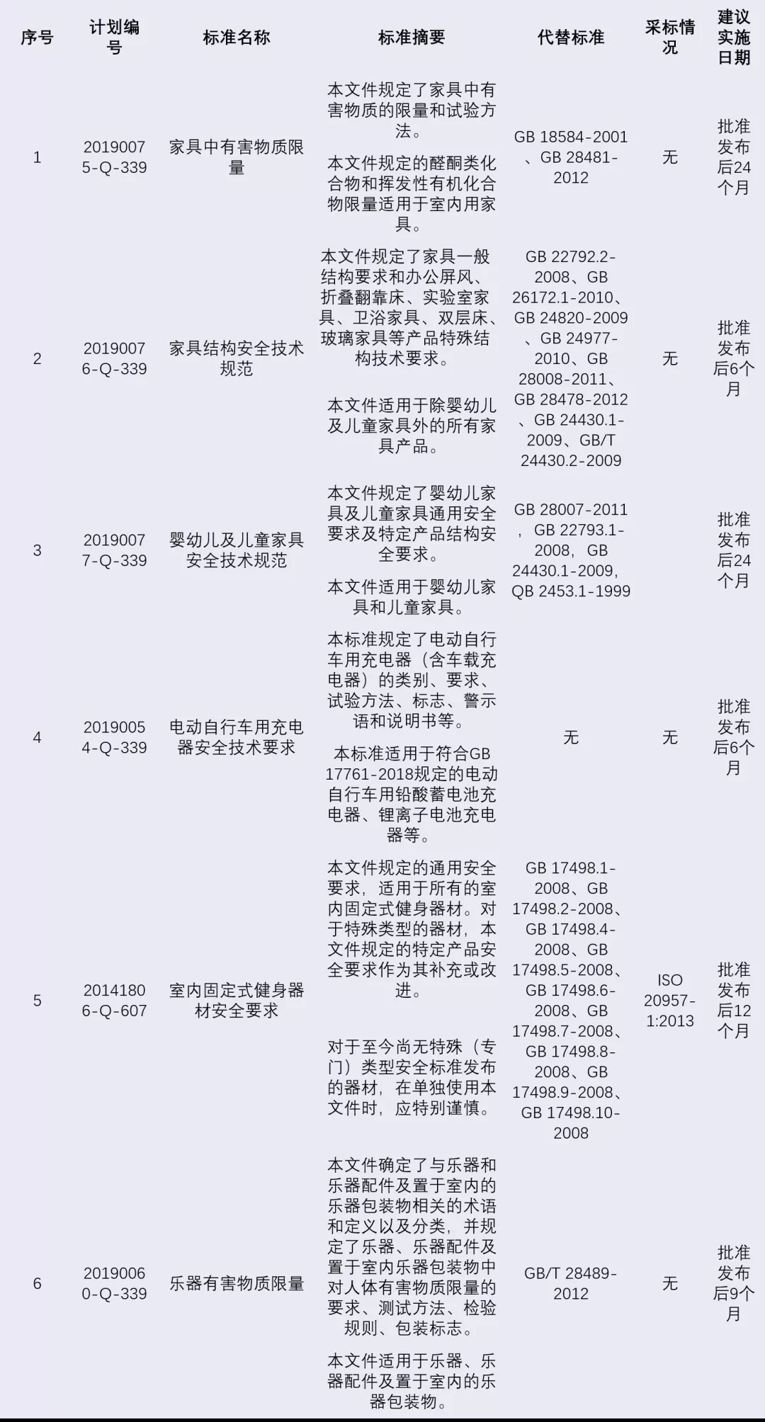 《家具中有害物质限量》等6项强制性国家标准征求意见稿公开征求意见