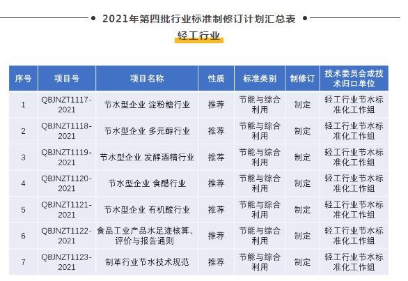 7项轻工节水领域行业标准制修订项目计划公开征求意见